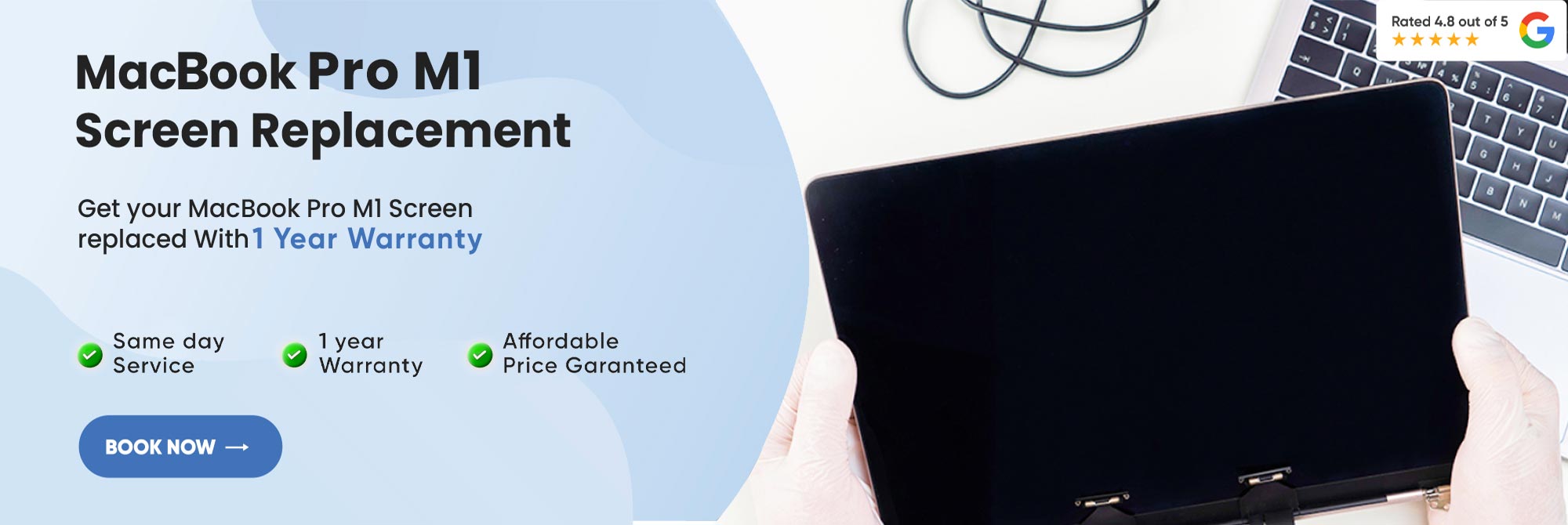 The cost of MacBook Pro M1 Screen Replacement is /15,999- INR, inclusive of an assured 1-year warranty. The exact price for Mac M1 Display replacement may vary based on the extent of damage and specific requirements.